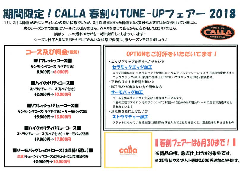 GWも間近に迫っていますが、まだまだスノーボードに行かれているお客さんも結構いらっしゃいますね。この時期のザラメやフィルムクラストも最高ですよね。 しかし、そろそろシーズンアウトってお客さま多いのも間違いないです。サイドカーでは春の時期だけのお得なチューンナップ割引を開催しています。滑ったあとに早めにメンテナンスすることで、エッジの錆なども早めに除去し、ボードを寿命を伸ばすことができると思います。 今年のオリンピックで日本代表のサポートを平昌の...