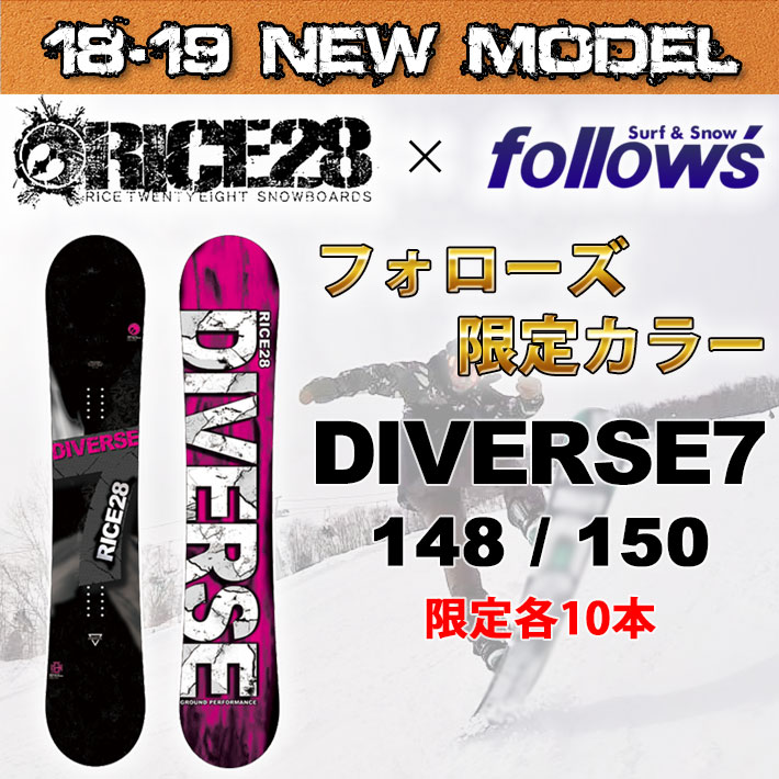 JUGEMテーマ:スノーボード そろそろシーズン終了という方も増えてきましたが まだまだスノーボード滑りに行っているお客様も多いです♪ 18-19モデルが気になって来店される方も そう フォローズ岐阜店にはすでに本商品がならんでいます。 今回ご紹介するのは 18-19モデル RICE28(ライス28)スノーボード DIVERSE7(ディバースセブン) フォローズ限定カラー 詳細はこちら 先日の高須スノーパークでの試乗会でも グラトリライダーに大...