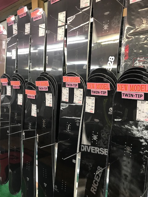 こんばんは 18-19 NEW MODEL RICE28/ライス28 スノーボード 30本以上入荷で ほぼ全てのTWINチップのラインナップ入荷!! パッと見は全て黒く見えますが RT9はカタログデーターではわかりにくいカーボン調のデザイン!! 渋すぎます!! RT7もカーボン調に銀箔でラインが入っているので 雪が溶けて濡れた状態になると鏡のようになると言うわけです!! さりげなさ過ぎます!! フォローズ限定カラーは確定はしていませんが この銀箔をミラーのように考案中!! DIVERSE7も銀箔のRICE28があります! こ...