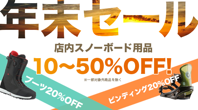 今年も残りが本当に少なくなってきました! いろいろなお客様にお世話になりながら本年も終了しそうです。 サイドカーでは店頭商品に限り、年末のセールを開催中です。 スノーボードはもちろん、ブーツ、バインディング、ウェアーなどをセールを開始いたします! お客様に合う商品であれば、とてもお得なプライスになっています。 ※一部対象外の商品あります。 年末の営業は30日までとなります。 皆様のご来店お待ちしております。 ...