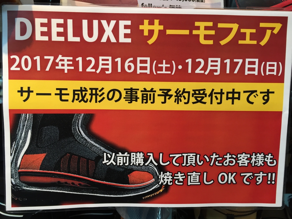 JUGEMテーマ:スノーボード 寒波到来でたくさんのゲレンデがOPENしております♪ もう初滑りに行かれた方も多いのでは。 一年ぶりに使ってみたスノーボードギアで違和感を感じるのは・・・ スノーボードブーツでは? 滑りに行って調子悪いからと購入に来られるのは スノーボードブーツが多いんです。 そこで 12月16日(土)、17日(日) フォローズ岐阜店、岡崎店にて DEELUXE(ディーラックス)スノーボードブーツ サーモフェア開催 ...