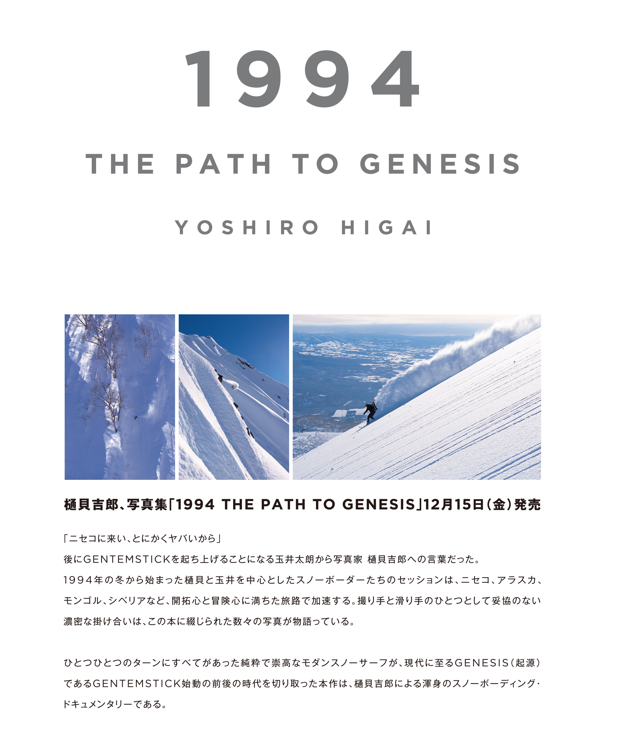 12月15日に発売となった『1994 THE PATH TO GENESIS』が本日店頭に入荷してきました。 『1994 THE PATH TO GENESIS』¥5,200 (税別) 994年に玉井太朗からの一本の電話で始まった命がけのセッションの記録が、128ページに渡ってプリントされたフリーライディングフォトグラフのマスターピースと言っても過言ではない珠玉の写真に凝縮されています。 現代のバックカントリースノーボーディングやスノーサーフムーブメントに通ず...