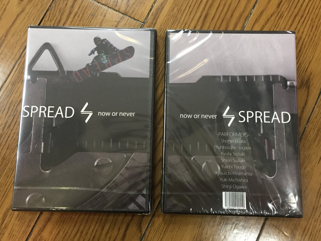 こんばんわ!! 今年からのNEW SNOWBOARD BRAND 【SPREAD】からDVDの入荷です!! NOW OR NEVER 簡単なトリックから難しいトリックまで幅広く収録しているので、自分に合ったトリックを見つけ今年の冬にチャレンジしてみよう! グラトリ【板さばき】は上達の近道!アイテムに入る前のイメージトレーニングにも最適です。 HOW TOでは江端翔兵が監修した厳選トリック3種類【FS オーウェン、BS オーウェン、BS ノーズコンパス360】を解説!さらに、ポキポキ堂 田中先生によるス...