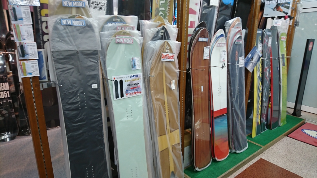 JUGEMテーマ:スノーボード 朝晩、だいぶ涼しくなってきましたね。 店内も夏物が移動して、冬モードになってきております。 パウダーボード、アルペンボードのコーナーが出来ました。 最近の流行です。カービングとパウダーは。 フォローズ限定カラーのGENTEM(ゲンテン) MANTARAY(マンタレイ)は おかげさまで完売となりましたが、ノーマルカラ...