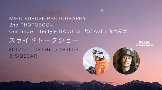 MIHO FURUSE PHOTOGRAPHY 2nd PHOTOBOOK Our Snow Lifestyle HAKUBA 「STAGE」発売記念スライドトークショー 写真家「古瀬美穂さん」が02’-03’シーズンより撮りためたスノーアクションシーンを白馬界隈のダイナミックな大自然の景色とともにまとめた写真集の発売を記念したスライドショーを開催します。スライドトークショにはPATAGONIAアンバサダーでもあり、白馬カラースポーツクラブのバックカントリーガイド「古瀬和哉さん」もトークショーに参加し、夫婦であり古くから白...
