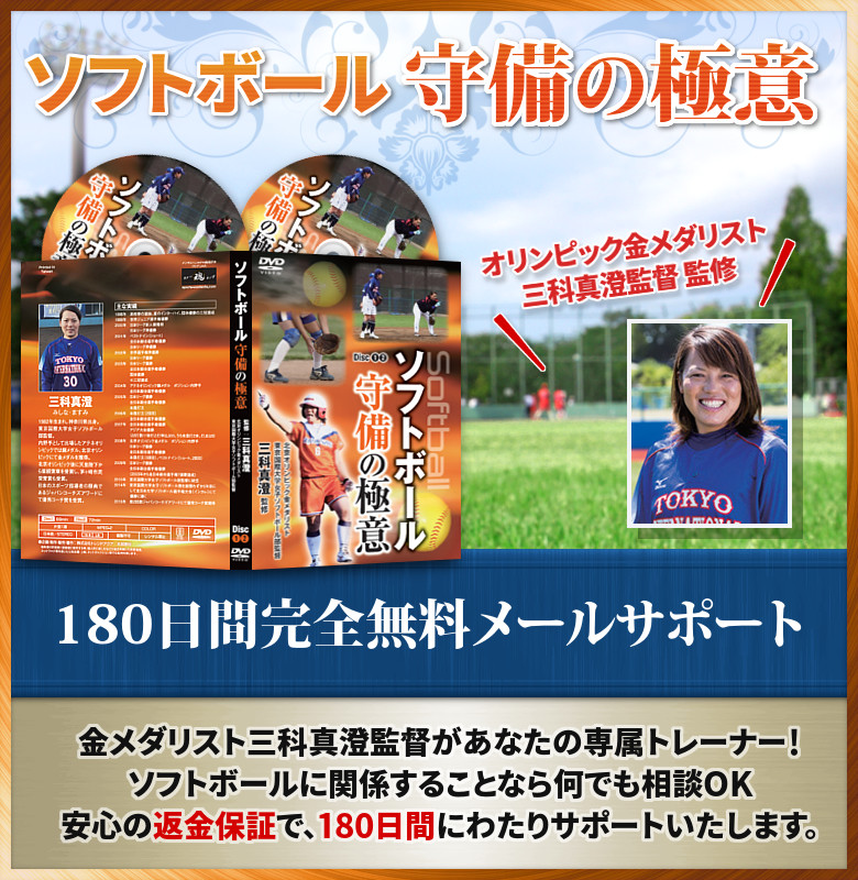 言葉だけではなくて三科監督が実践して教えてくれるので、よりイメージしやすいです。 校外チームの監督から、「すごく守備が上達してきた」 とほめられて、すごくやる気が出ています。 さすが世界を制した選手の技術は違いますね。 三科真澄のソフトボール守備の極意には、 ショートバウンドをうまく捕れるようになるための足の使い方 サードの選手がバント処理をする際に念頭においておくべき感覚 外野フライを捕るときのNGポイントと意識すべき3つの場所 外野のゴロは捕球するときの3つのポイント な...