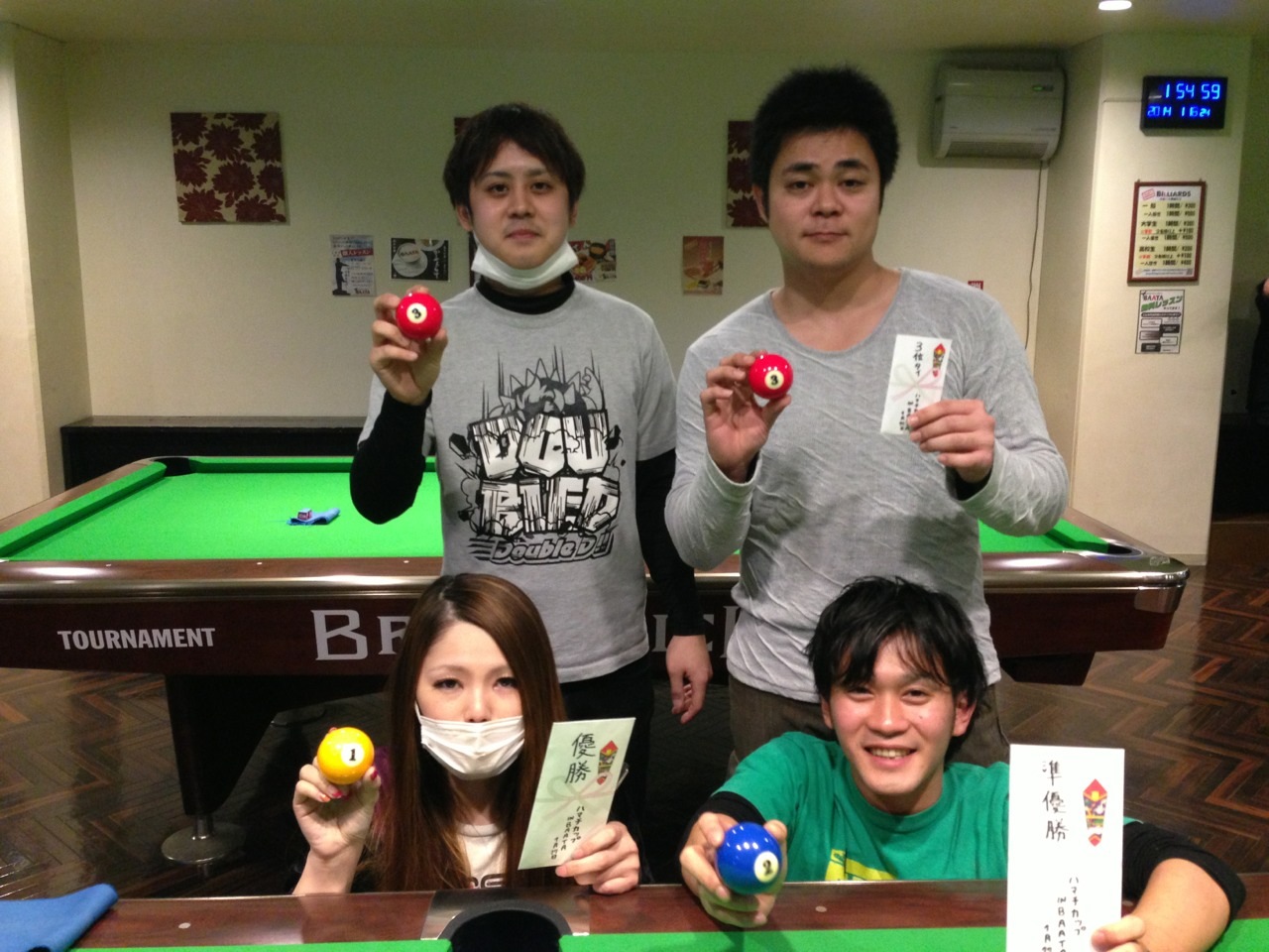 こんにちはヾ(・∀・*)BAATA STAFF SAKUpですよっと♪昨日は、第三金曜日!という事でハマチカップが行われました〜♪参加人数は33名!!!!(゚ロ゚ノ)ノ ♥参加してくれた皆さん!ありがとうございます〜ぅヽ(*´Д`*)ノ 気になる結果の方は…。優勝 金城奈央(ハスラー) 左下準優勝 仲吉朝仁(モンスター) 右下3位タイ 比嘉勇人(BAATA) 右上3位タイ 上間 彬 (N屋) 左上でしたッ(`・∀・´)おめでとうございます★ささ!明日は、年に1度のチャリティービリヤード大会!気合いはいってまっせ〜(o(。・д・...