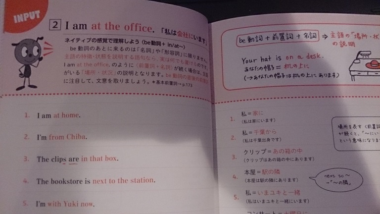 JUGEMテーマ:英語学習のブログ 今日は、L8。 主語+動詞+副詞 副詞に「いつ?」、「どこ?」、「どんな風に?」といった情報を補い、 副詞で文の意味を補う感覚をつける訓練です。 The e-mail came yesterday. The plane arrived late. Let's sit there. The girl looked away. The baby slept peacefully. I worked hard. この本は、「どんどん話すための瞬間英作文トレーニング」よりもより実際に使用する英文が採用され、 訓練方法も工夫されていま...