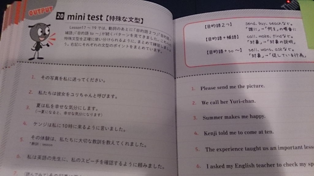 JUGEMテーマ:英語学習のブログ Nobu式トレーニングを購入し中学英文法をベースに英会話の訓練を開始しました。 Lesson 3までやってみて感じたのは、他の本とは異なる良い点があります。 それは、InputとOutputで分けてありそれぞれの目的にマッチした形で使用できるところです。 通常のテキスト、例えば、瞬間英作文の本では日本文と英文が対比している点、中学英文法を使用している点は同じですが、特にInputとOutputは分けてなくどちらかと言えば日本文&rar...