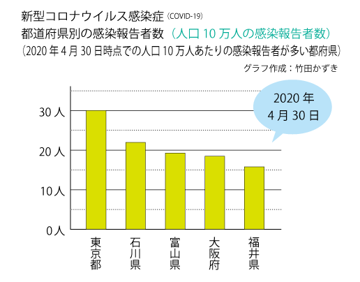 JUGEMテーマ:教育 これまで「新型コロナウイルス感染症の都道府県別の感染報告者数」の片対数グラフを描いてきました。 その中で2020/4/7のブログでは「人口10万人あたりの感染者 最多は福井県」というニュースを取り上げ,福井県のグラフを描いていました。 今回,改めて「人口10万人あたりの感染報告者数のグラフ」を描いてみようと思いました。 (研究仲間の村西さんからの提案でもあります) ※ ※ ※ 「人口10万人あたりの感染報告者数」については,日本経済新聞が「チャートで見る...