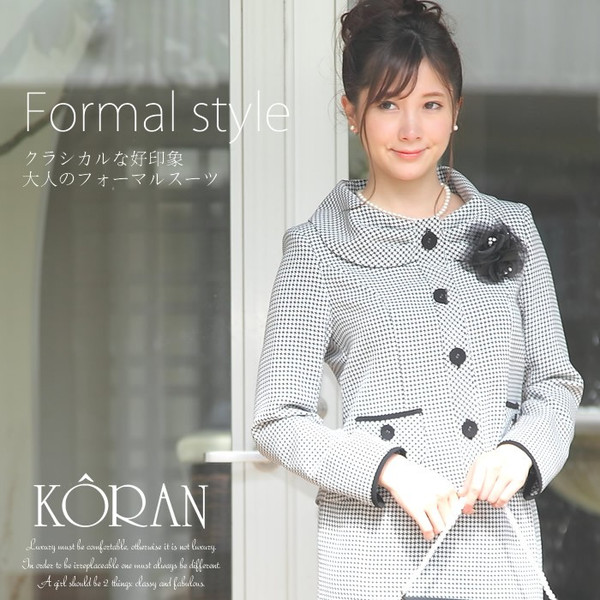 JUGEMテーマ:入学式 ☆着回しできるオシャレなデザインの上品アンサンブルスーツ https://store.shopping.yahoo.co.jp/koran/ko32-kw712057.html 色:ブラック×オフ サイズ:7・9・11・13・15号 価格:37,584円 単品使いでも活躍する便利なアンサンブルスタイル ワンピースの身頃が隠れる程良い丈のノーカラージャケットは 胸元のワンホックを留めても、外して着流してもお使いいただけます