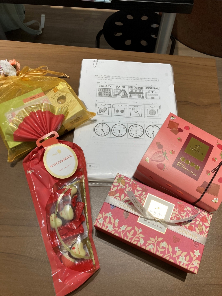 JUGEMテーマ:児童英語 受験まであと2週間。 不安と希望と 気持ちがゆらぐ時期ですね。 受験生3人組。 いつも元気で、色々な話をして 楽しく過ごしてきましたが この日が最終日。 残りはいつも通っている塾で 5教科の最終まとめ。 バレンタインのプレゼントも持ってきてくれました。 ありがとう。 過去問と一緒に。 寂しくなります。 &nbs...
