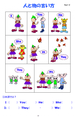【人と物の言い方、代名詞の教え方】 この代名詞 I, you, he, she, it の学習は、英語学習を始めるにあたって、最も大切な学習です。自分の立場から英語を話す「使える英語の習得意味」という意味において、先ずは初日のレッスンに必ず取り上げていただきたいです。 【先ずIYouを教えてから I’m〜. You are〜. 】 先ずは動画を参照ください。 上の動画や右の絵のIにあるように、先生やお母さんは(以下指導者と書きます)、先ずは自分の...