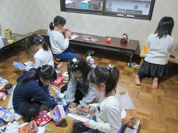 JUGEMテーマ:小学生ライフ(・ω・*)ノ 今日の降水確率はずっと90%で、路面も光っています。 少し風もあったので、無理せず室内活動にしました。 水曜日と木曜日は「学習会」。午後4時から30分ずつ 英語・漢字の検定を目指しての学習です。今日は1年生主体。 そして1月12日には漢字検定試験が予定されています。 8名が挑戦します。全員合格してほしいですね。 ということで、今日は自由工作を楽しみました。 ...