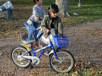 JUGEMテーマ:小学生ライフ(・ω・*)ノ 今日の近隣公園は少し風があって、肌寒いような 天気でしたが、そこはにじっこの子ども達、平気のへっちゃらで しっかり遊んできました。 人気もまばらな公園で、元気に自転車乗り。 ブランコでも遊びました。 女子は縄跳びで一汗かくくらいでした。 男子はキックベースで盛り上がっていました。 ようやく自転車に乗れるようになりました。見てください。 三人がかりで手を添えて練習した成果です。 今日の...