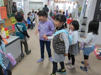 JUGEMテーマ:小学生ライフ(・ω・*)ノ 輪投げ、射的、ポップコーン、いろいろやっていました。 こばと保育園のみなさん。もうすぐ出演です。 ハロウィンの風船もゲット。 休憩室でさっそくおやつタイム。 楽しい午前中でした。