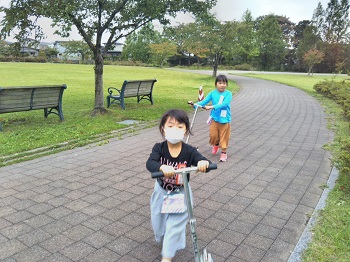JUGEMテーマ:小学生ライフ(・ω・*)ノ 予報では今日一日くもりでしたが、ちょうど外遊びに 出発したとたん、空からなにやら冷たいものが…。 それでも1年生を中心に、近隣公園に出かけてきました。 2年生以上は、木曜日の学習会で、英語と漢字を頑張る日でした。 遊び半分に傘を持って散歩しました。 キックボードと自転車を存分に楽しみました。 1時間ほど外遊びの後は、おやつ。栗をいただきました。 毎日の勉強の後は、ごっこ遊び。とても楽しそうでした...