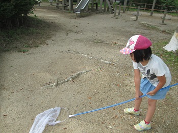 JUGEMテーマ:小学生ライフ(・ω・*)ノ 今日の子ども達の人数は、いつもよりかなり少なかったです。 PTAとかいろいろな行事があったようです。でも外遊びやる気満々。 虫捕り網、自転車、キックボードなど準備万端です。 トンネル坂を下る子ども達の影が、少し伸びて います。 近隣公園に到着。さっそく縄跳び開始。上手に飛べたり すぐ引っかかったり、その都度、いろいろな会話が 弾んでいました。 男子は今日は虫捕りより、サッカーでし...