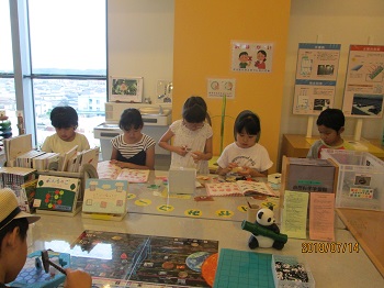 JUGEMテーマ:小学生ライフ(・ω・*)ノ 昨日は久しぶりにアルヴェにいってきました。 1階では、こども未来センターなつまつりが行われていました。 にじっこは5階へ行って、いつもの遊びをしました。 みんなで協力をして、ごっこ遊び用の折り紙をしました。 午前中いっぱい楽しんできました。お昼を食べて、それぞれ 勉強を1時間ほどやりました。そしていつもの近隣公園に 出かけました。 いいお天気の下、いっぱい体を動かしました。
