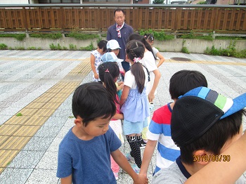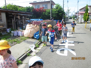 JUGEMテーマ:小学生ライフ(・ω・*)ノ 保育園「もりのらくえん」の園庭お披露目まつりに 子ども達14名が行ってきました。 にじっこ学童クラブから近隣公園を横切って、15分くらい の近くにあります。お天気は最初もっていたのですが、 途中からひどくなり、園内に場所を変えてやりました。 手作りの、かき氷、イカ焼き、枝豆、キュウリ一本漬けなど 頂きました。保育園の子ども達とも交流し、にぎやかな おまつりでした。 歩いていきました。 お披露目された園庭で...