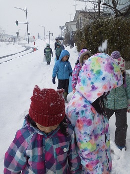 JUGEMテーマ:小学生ライフ(・ω・*)ノ 今日は教職員の研修ということで、下校時間が早く どの学校も、ほぼ13時半でした。お天気も良く 外遊びの時間がたっぷりとれました。おかげで写真も たくさん撮れましたので、ご覧ください。 公園に行く途中は、雪が良く降りました。 今日もにじっこの丘に登りました。 さっそくソリすべり開始です。 新しく大きなビニールも用意しました。 雪は降ったりやんだりと激しいです。 ...
