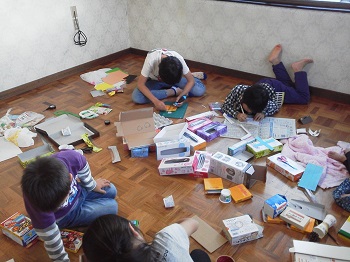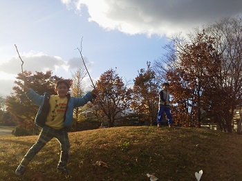 JUGEMテーマ:小学生ライフ(・ω・*)ノ 今日は全市一斉の早帰りのため、午後2時頃には にじっこ、子ども達の声でいっぱいになりました。 一番早く下校してきた子ども達から順に、自由工作。 たくさんの空き箱を使い、好きなものを作りました。 全員が揃ったところで、曇天の近隣公園に出かけました。 男子はさっそく木の枝の木刀さがし。 女子は運動会のリレー練習。 ダンスをしながらのりのりで楽しんでいます。 男の子は丘の周りを追いかけたり、逃げた...
