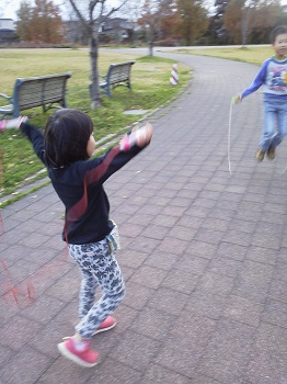 JUGEMテーマ:小学生ライフ(・ω・*)ノ 昨日の雨と風の影響がまだ残っている公園に 帰ってくるとすぐ、子ども達は出かけました。 さすがにコートを着て出かけましたが、遊び始めて すぐ脱いでしまいました。 ブランコの下に水たまりが…。気にせず遊びました。 鬼ごっこ。男女仲良く遊びました。 最後はとうとうリレーを開始。ほっぺが赤くなりました。 おやつを食べて、勉強をしっかりやりました。