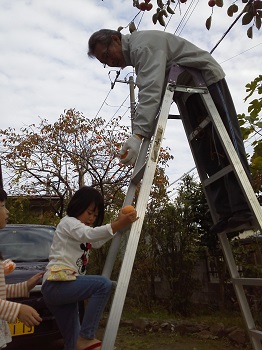 JUGEMテーマ:小学生ライフ(・ω・*)ノ 秋の味覚、柿を収穫しました。子ども達にも手伝って もらいました。干し柿にする予定です。 50個位とりましたが、まだまだいっぱい残っています。 今日も元気に下校してきた子ども達。すぐに近隣公園に 遊びに行きました。 仲良くブランコを楽しんだり、 基地を駆け巡り遊びました。 クラブに戻ってからは、おやつを頂き、勉強を頑張り ました。