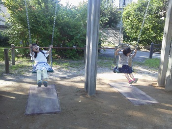 JUGEMテーマ:小学生ライフ(・ω・*)ノ 今日から9月です。秋、過ごしやすい季節になり 子ども達の活動も全開です。 下校後すぐに近隣公園に遊びに行きました。 新しいブランコは長く、乗ったかいがあります。 滑り台もおもしろいです。 さすが女の子 抹茶遊び(?) 香木(?) 公園には遊びがいっぱい転がっています。 1時間ほど遊んだ後は、勉強。頑張っています。 お迎えの遅い子どもは、またまた公園に。 お...