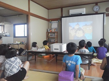 JUGEMテーマ:小学生ライフ(・ω・*)ノ 手作りのお化け屋敷を開催しました。 おばけの絵と写真と効果音で作った簡単なもの でしたが、なかなか怖かったようでした。1年生ばかりでなく 4,5年生でも、怖くて途中から戻ってきた子どももおりました。 最後は全員で手を取り合って楽しんでいました。 そしておばけの後は、 今日はこの夏一番の猛暑。大好きな公園にも出られず 映写会を急遽開催しました。みんなでゲラゲラ笑いながら、 楽しみました。 夕方、少し風が出てきた...
