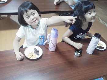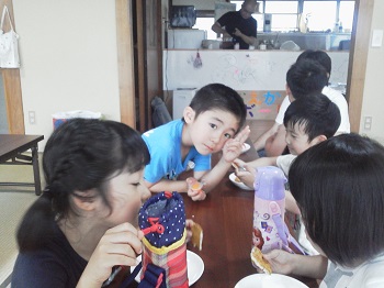 JUGEMテーマ:小学生ライフ(・ω・*)ノ すっきりしない天気が続いています。 季節もなんかちょっと変で、コスモスが咲いたり とんぼがたくさん飛んでいたりしています。 お隣の国はミサイル飛ばしが好きなようで、 天地異変があるのかなと不安な気持ちになります。 でもこんな時にこそ、元気な子ども達の声に、 励まされています。 今日も明るい声で楽しく過ごしました。 にぎやかにおやつをいただきます。 同じ筆入れにすっかり意気投合。 勉強の後は...