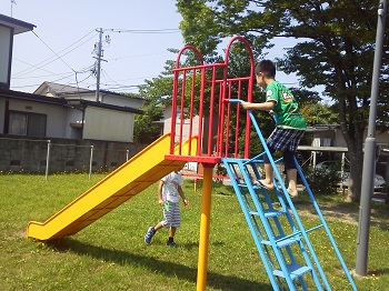 JUGEMテーマ:小学生ライフ(・ω・*)ノ 秋田では今年一番の暑さではなかったでしょうか。 雲ひとつなく、じりじりするようでした。 にじっこでは朝から開館。お天気をみながら どこへ行こうかのんびりした土曜日でした。 午前中少しだけ公園に出かけ、子ども達揃ったところで、 図書館へ出かけてきました。 絵本など読みながら、涼をとるひと時でした。 タイヤ公園で遊びました。 将棋にも汗を流しました。 午後からは広い近隣公園に出かけまし...