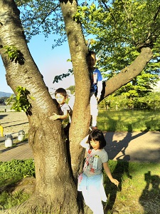 JUGEMテーマ:小学生ライフ(・ω・*)ノ 明日はほとんどの学校で運動会。今日より暑いとか。 あまり無理をしないで、頑張ってほしいです。 今日は下校時間の早い1年生から公園に行きました。 もちろん勉強は終わってから。 じっくり自転車の練習をしたり、長いブランコを 楽しんだりしました。 木登りも得意です。