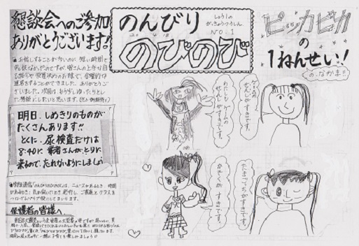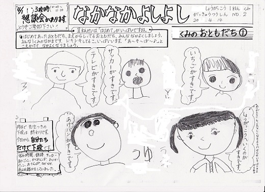 JUGEMテーマ:クラス作り *〜*〜*〜*〜*〜*〜*〜*〜*〜*〜*〜*〜*〜*〜* 1年☆組の学級通信・学級だよりスタート! *〜*〜*〜*〜*〜*〜*〜*〜*〜*〜*〜*〜*〜*〜* ◆入学式の日の学級通信・学級だより ◆入学式の時は、 配布物も多いのですが、 そんなことには負けないで、 教室扱いの、 担任あいさつの時に 配って読み上げて、 アピールしていました。 ・子ど...