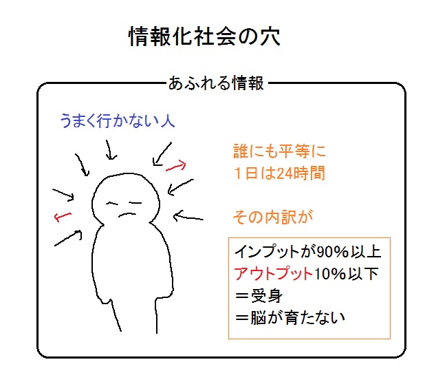 JUGEMテーマ:就職活動 対話こそ他人と生きていくのに必要なものと言えます。 対話のゴールは勝敗じゃなく、相手の考えを取り入れ自分の幅を広げるところにあります。 つまり、対話は人を賢くします。 少なくとも、会話は人の心を豊かにします。 しかし、情報化社会は情報の一方通行を加速させたと言えます。 本来は、誰でも世界に向けた発信ができる、というメリットがある情報化社会なのに。 例を挙げると、アウトプットが少ないタイプの人は、情報が増えた分だけインプット時間が増えるのです。 すると...
