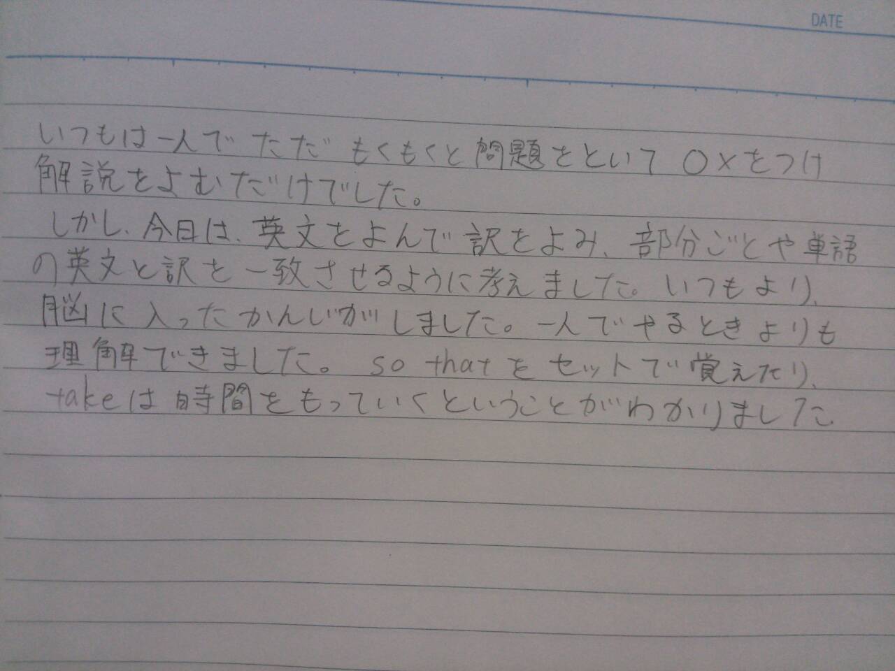 JUGEMテーマ:受験生 高校生の自宅学習は、じゅわき先生とともに。 本日のじゅわき先生。 高校生さんの英語の復習に参加しました。 自宅学習ができているのにテストの点数に反映しない生徒さんは、ぜひ一人でやらないでください。 対話をしながら勉強すれば、嫌でも理解度が上がります。 本人が気付かない疑問点をじゅわき先生があぶり出します。 一人のメリットって少ないから、みんな塾へ行ったり家庭教師を呼ぶのですよ。 でも、テスト中は一人でしょ? じゅわき先生なら、一人で学習しているんだ...