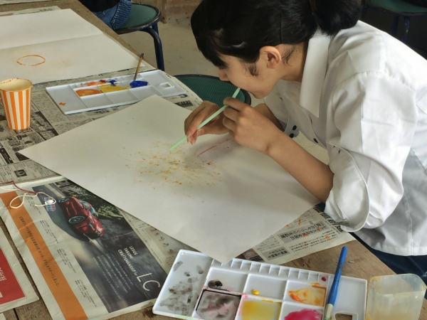 「色」と「かたち」に着目してスクーリングを展開している、美術?。 今回は「夏」をテーマに絵づくりを行いました。 来週から夏休みということで、 夏休みからイメージできる言葉を書き出して・・・ 現代絵画技法である、モダンテクニックを用いて制作しました。 筆の使い方を工夫したり、ストローなど様々な道具を用いて描きます。 金網とブラシを用いて、スパッタリングにも挑戦! ラッ...