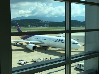 今日の朝に出発したNZ語学研修一行から、無事に福岡空港を出発し、経由地のバンコクに到着したと連絡がありました。 今回の旅でお世話になる航空会社はこちら。タイ航空です。 そして約5時間のフライトを終えてバンコクへ。 この空港、端から端まで歩くと一体何分かかるのか… とにかく大きい国際空港です。 見えるものは… もちろんですが日本語はほぼなし。 日本を出国したと改めて感じます。 さぁここからオークランドまで約10時間。 まだまだ長い移動ですが、9人の生徒皆...
