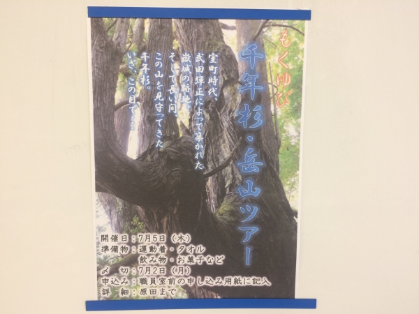 台風は去りましたが、梅雨はまだまだ続きます。 予定していたもくゆび 「千年杉経由岳山ツアー」は、やむなく中止となりました。 参加申し込みをしたみなさんは残念でしたが、 また次回の企画を楽しみに待っていてくださいね。 本日はもう一つの企画が。 「インターンシップ」事前指導が行われました。 インターンシップとは、広島の企業で就業体験を行うものです。 働くことや学ぶことの意義を実感し、 働くことの喜び...