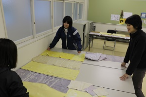 JUGEMテーマ:豊かな学びは夢を後押ししてくれる ほしぞらキャンプで生徒たちが取り組んだ草木染。 染めた後は、もちろん乾燥。 数日間の充電期間をおいて完成へ。 みんなが染めた作品を並べてレイアウト。 黄色や紫の染まり具合がなんとも風流な感じ。 しぼったところもいいアクセントになっています。 大小様々な個性ある作品が。 絞り方や染め物の量で全く違う表情に。 そして、中心にある布には文字が…。 なんて書いてあるかわかるかな(笑)