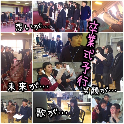 JUGEMテーマ:豊かな学びは夢を後押ししてくれる この日は卒業式の予行がありました。 思い返せば今年度も4月からあっという間にここまで駆け抜けてきました。 2015年度のメンバーで活動するのもあとわずか。 それぞれの想いを胸に臨みます。 在校生と卒業生に分かれて活動。 場所は違えど想いは同じ。 寂しいばかりではなく、未来へ歩む喜びも。 式の手順が確認されています。 練習ですが、最初はみんな少し緊張気味でした(笑) しかし、そこは卒業年次生。 立ち居振る舞いはバッチリ! 音楽室では歌の練習。 パ...