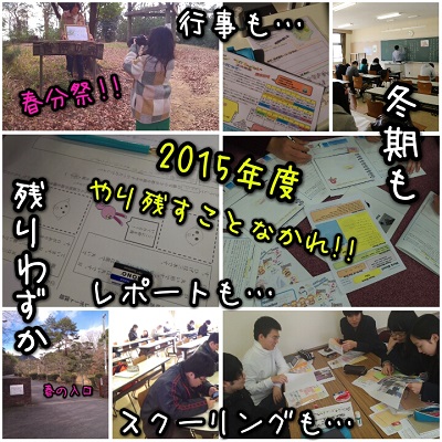 JUGEMテーマ:豊かな学びは夢を後押ししてくれる ついに冬期、最後の週が始まろうとしています。 レポートにスクーリング、あっという間に冬期の時間が駆け抜けていきました。 やはり時間はかけがえのないもの。 明日からは冬期ラストの週。 単位認定試験も目前ですが、ゆっくり少しずつ前進します。 今月末には冬期終了行事:春分祭も待っています。 新しい始まりへ向けて今を!!