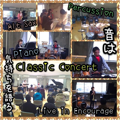 JUGEMテーマ:豊かな学びは夢を後押ししてくれる 昨日に引き続き、今日もエンカレには音が響きました。 エンカレは知育館、音楽室にクラシックコンサートを開催しました。 今日の奏者はプロとしても活躍されている音楽家の方々。 生徒は美しい音に酔いしれました。 ピアノ、アルトサックス、ドラム、マリンバの共演。 3人の奏者の一体感が伝わる、プレイは圧巻。 振動は鼓膜だけではなく心を揺さぶります。 受付は生徒がお手伝い。 笑顔で会場にご招待。 食い入るように見つめる生徒たち。 音にこめられた奏者の想い...