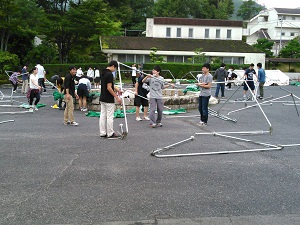 JUGEMテーマ:豊かな学びは夢を後押ししてくれる 現在、広島工業大学沼田校舎ではエンカレ祭への準備が急ピッチで進められています。 今日は各プログラムの現在進行中の準備に加え、テントの設営、イス机の搬入が行われました。 会場設営に生徒たちはあちこちを奔走。 額には汗が輝いていました。 全部で18針のテントを設営しました。 1年ぶりの大掛かりなテント設営。 みんな、コミュニケーションを取りながら立てていました。 さあ、気になるお化け屋敷の進行具合。 徳育館の改造はグングンと進んでいます。 巡回ル...