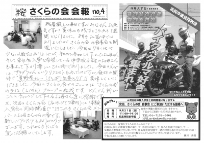 JUGEMテーマ:不登校・発達障害・学習障害を支援する学校 JUGEMテーマ:まだ間に合う高校受験 JUGEMテーマ:転入学・編入学 JUGEMテーマ:バイク・クルマ好き集まれ! JUGEMテーマ:自分に合った高校探し JUGEMテーマ:通信制高校 【さくらの会】 KTS柏高等技術学園〜さくらの会〜の会報が出来上がりました!! さくらの会会員の皆さまには、ご自宅へ郵送させていただきました。 次回のさくらの会開催日も載っています。 ぜひご参加下さい!... お待ちしています(*^_^*) さくらの会会報を読み...