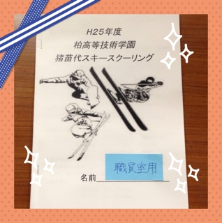 JUGEMテーマ:通信制高校 柏高等技術学園生みんなだーい好きな「おでかけ!!」 お待たせしました〜! 今回は2年生がスキースクーリングに行ってきます! 2年生のスキースクーリングのしおりが出来上がりましたので、 内容をご紹介しまーす!! ↓↓↓ [猪苗代スキースクーリング] 日 時:平成26年3月3日〜4日(1泊2日) 宿泊場所:福島県耶麻郡猪苗代町大字川桁リステルパーク 目 的:日常とは違った環境で集団生活をすることで、環境対応力を育み仲間との友情を深める。 引率教員:ジュニア・...