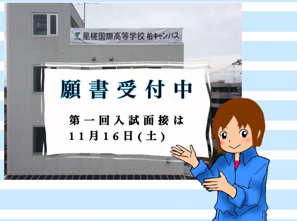 星槎国際高等学校 柏キャンパス 事務局です。 11月1日より願書受付が始まっております。 第一回入試面接は11月16日(土)です。 いよいよ今週末です! 願書提出等に関してご不明な点がありましたら学校までご連絡ください。 パンフレット等の資料をご希望の方も学校までご連絡ください。 ◆願書受付時間◆ 平日 : 9:00〜17:00 *学校の休日等がございますので出願の際はお電話にて...