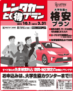 春休み…お友達やご家族でお出かけの際は…大学生協のレンタカープランがお得!大学生協のレンタカープランは、以下のレンタカー会社と提携しています。トヨタレンタカー、日産レンタカー、タイムズカーレンタル、オリックスレンタカー、レンタカージャパレン、ニッポンレンタカー 「目的に応じて借りる」「用途に合わせて選ぶ」が、レンタカー利用の最大のメリットです。 旅行や合宿などの際には、レンタカーが便利です! <大学生協のレンタカープランの魅力> ・生協料金には、すべて免責補償料込みなので安心!・カーナビ、ETC車...