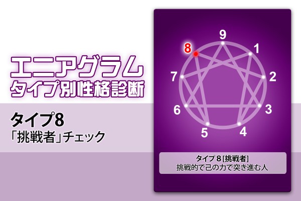 JUGEMテーマ:心理学 エンタメ系心理テストサイト MIRRORSに 心理テスト・性格診断を作成・監修行っています。 エニアグラム性格診断、タイプ別チェックも 行っています。ためしにチェックしてみてください。 [エニアグラム・タイプ別診断]タイプ8 「挑戦者」チェック あなたは強い人?弱い人?