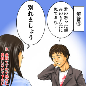 『だいたい!前から言いたかったんだけど!』 ピンチ! あなたの一言が、恋人を怒らせてしまいました。 この怒りを回避するにはどうしたらいいのでしょう? 1.『食事でもしながら話そうよ』と、お茶や食事に誘う 2.『ところで…』と話をそらす 3.『今時間がないから、あとで』と時間を置く 4.『あなたの怒った顔、みのもんたに似てるね』 あなたの答えが出てから続きを読んでくださいね。 ...
